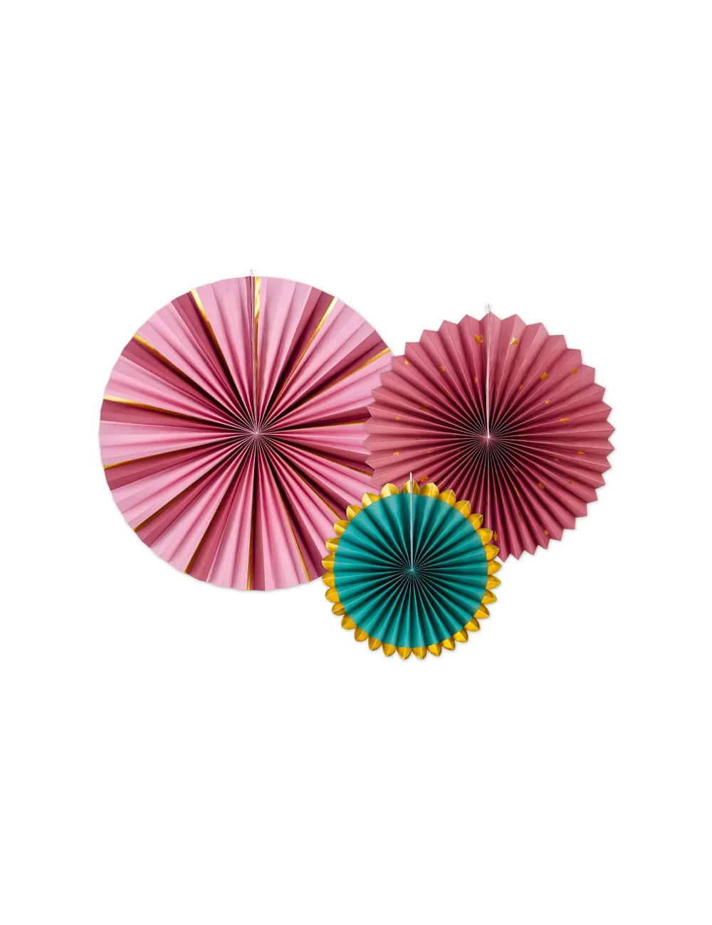Ronde papieren waaiers met een mix van kleuren in het thema Kerst. Een verpakking bevat 3 waaiers in verschillende kleuren en maten.