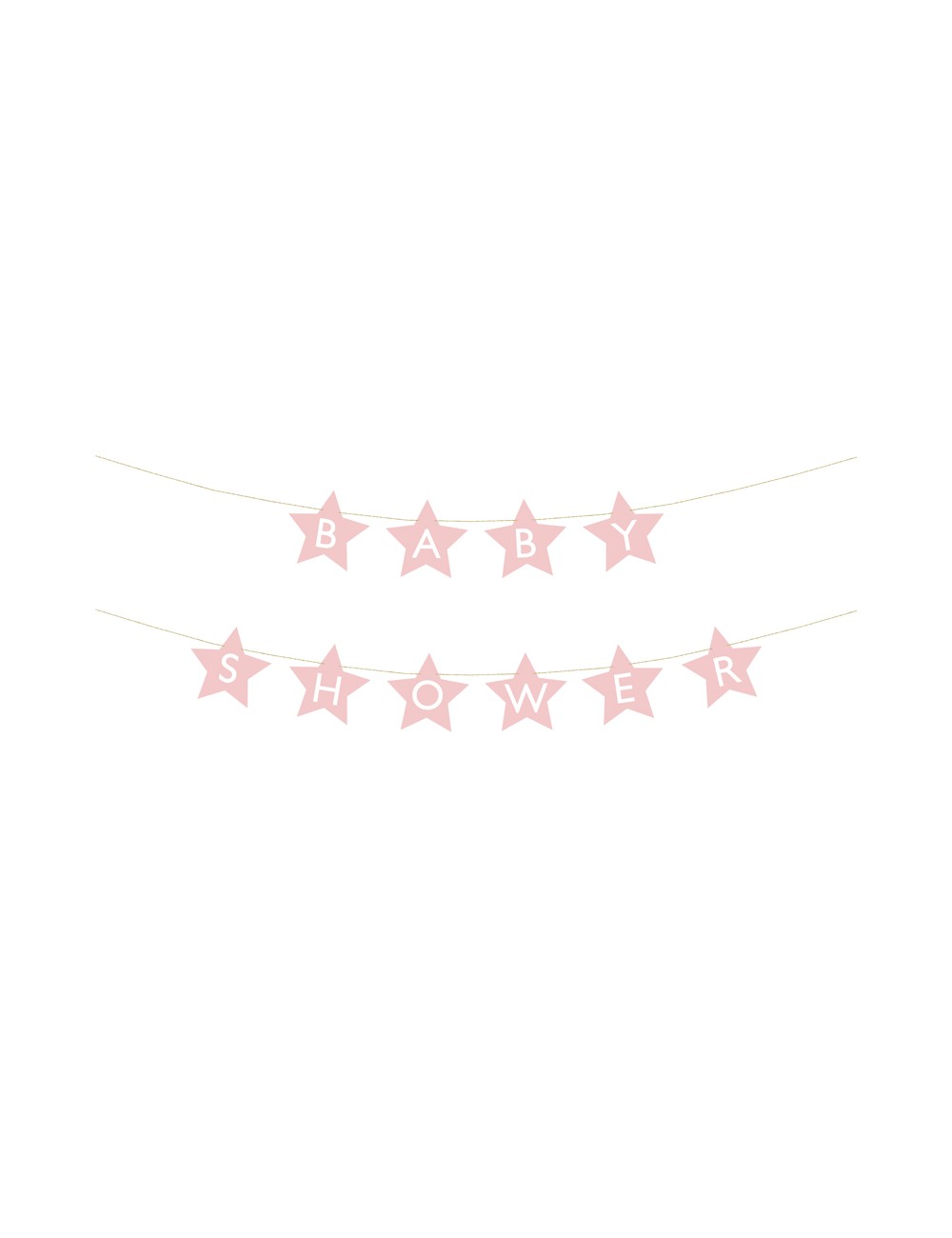 Roze slinger met de tekst "Babyshower". Een verpakking bevat 1 slinger.