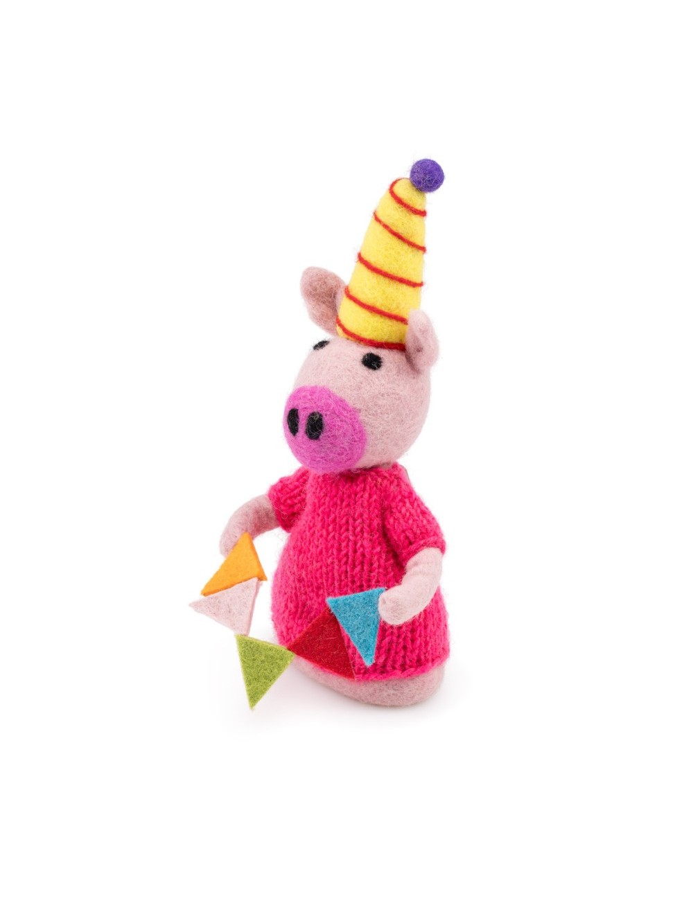 Vilten feestvarken. Leuk als decoratie voor een feestje, in de kinderkamer of als eiwarmer bij het ontbijt! Kan ook gebruikt worden als handpop voor kinderhandjes.